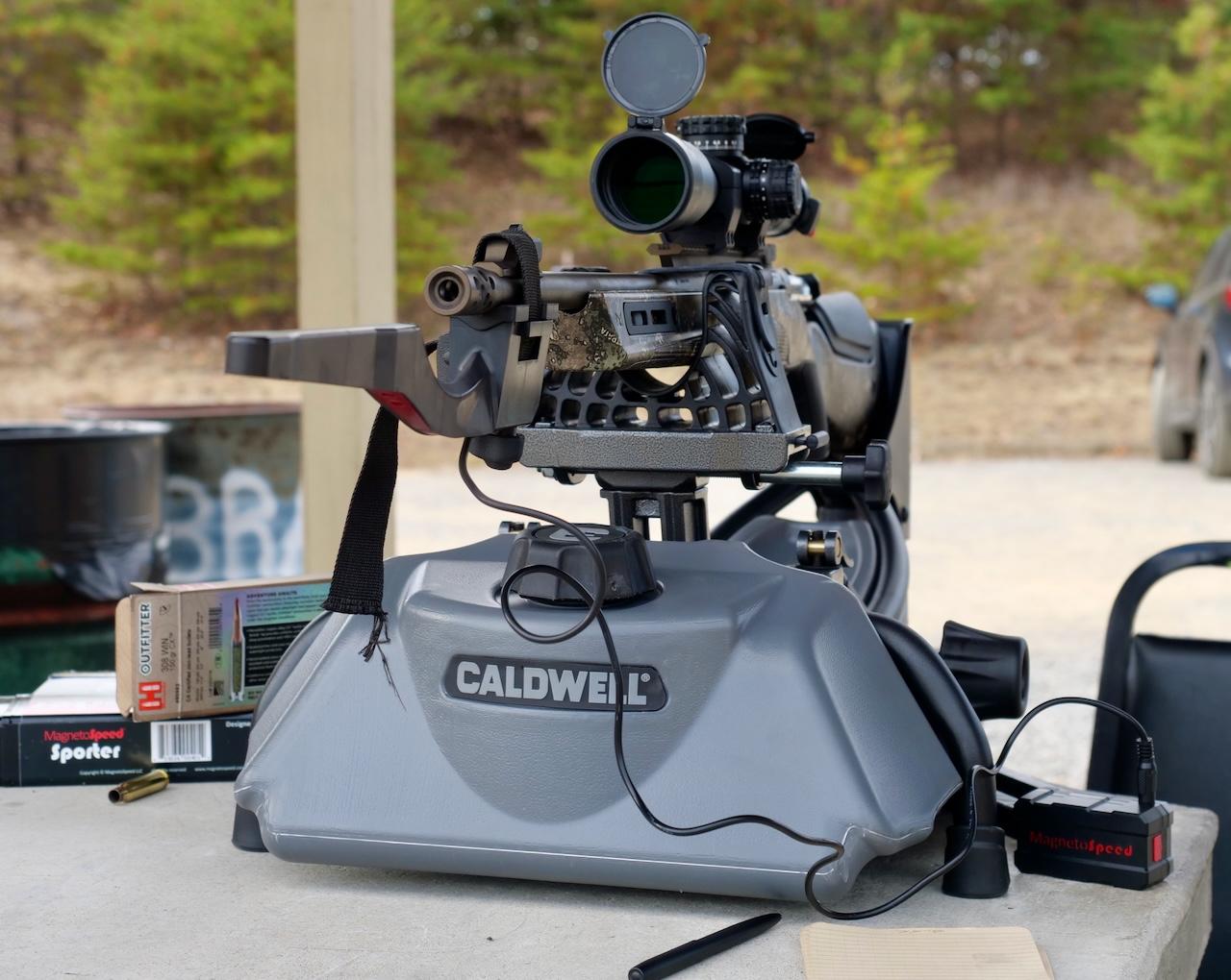 I’ve used it with several 308s and a 300 Win Mag (a Sako S20) as well, and had a lot of trouble with the bayonet slipping off the end of the barrel under recoil no matter how much I tightened it down. The magnetic chronograph is very position sensitive. In the Sako’s case, the bayonet slipping around actually threw off my published results and resulted in some wild velocity standard deviation (oops!).