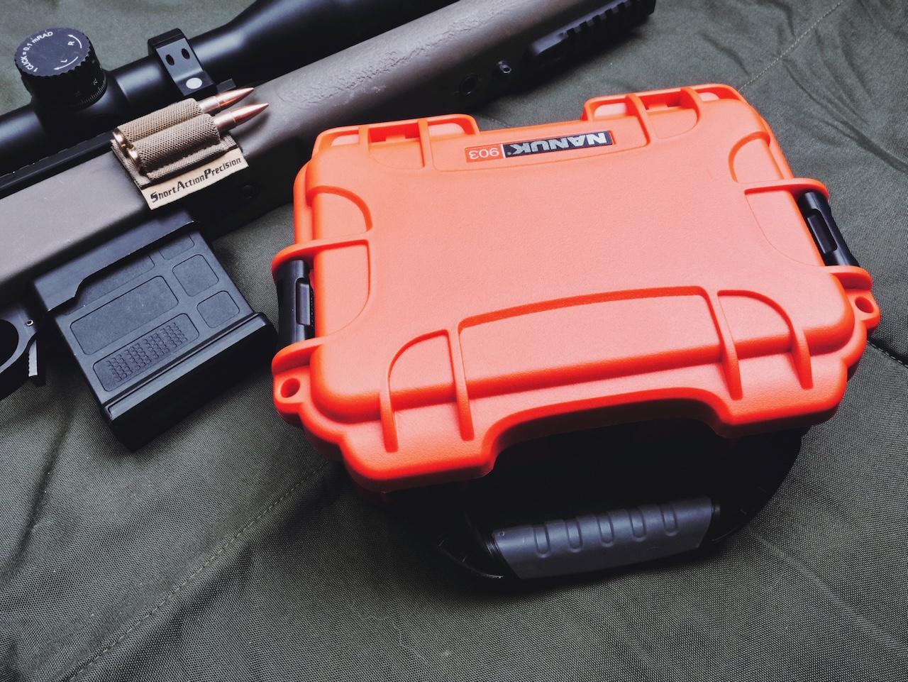I ended up with a hard-sided bright orange Nanuk 903 hard case. I also purchased a custom cut foam insert that I picked up from a guy calling himself “Range Panda.” Again, I purchased it myself and there’s no connection to the seller. In all, it’s some high quality work and I’m happy to throw some attention towards the guy’s business.