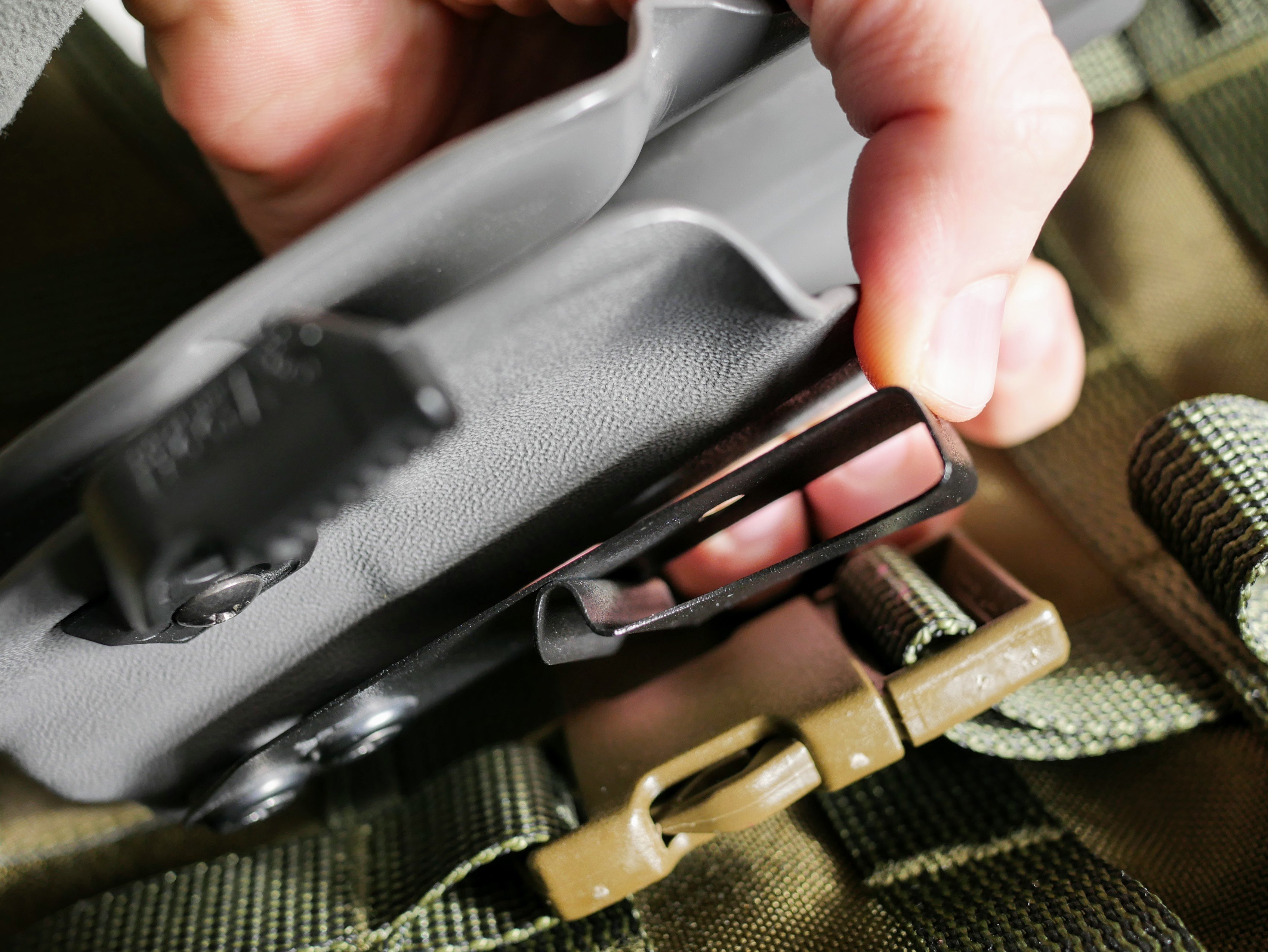 First, the claw attachment does its job well. But I’ve had a few times where getting the holster off of me was a bit slower since the claw acted like a hook and grabbed the material of my pants. It’s not that big a deal, really, and its still way faster than unthreading a holster off the belt.