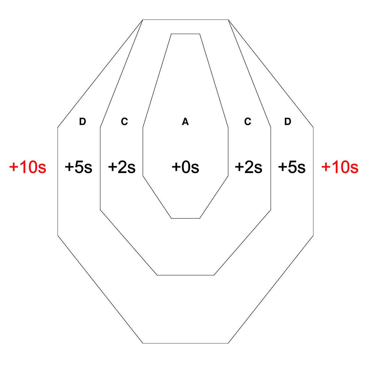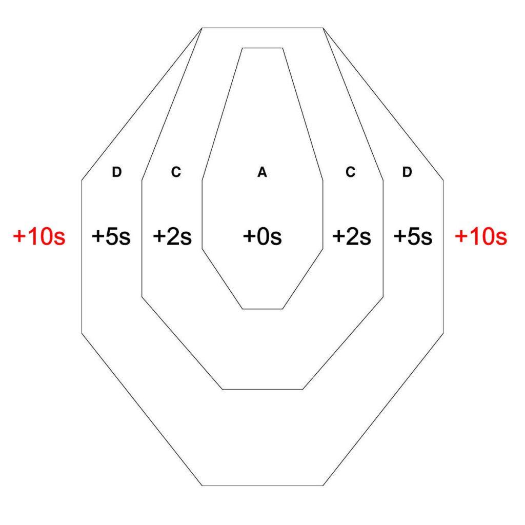 - Off target (outside the D-zone): +10 seconds each