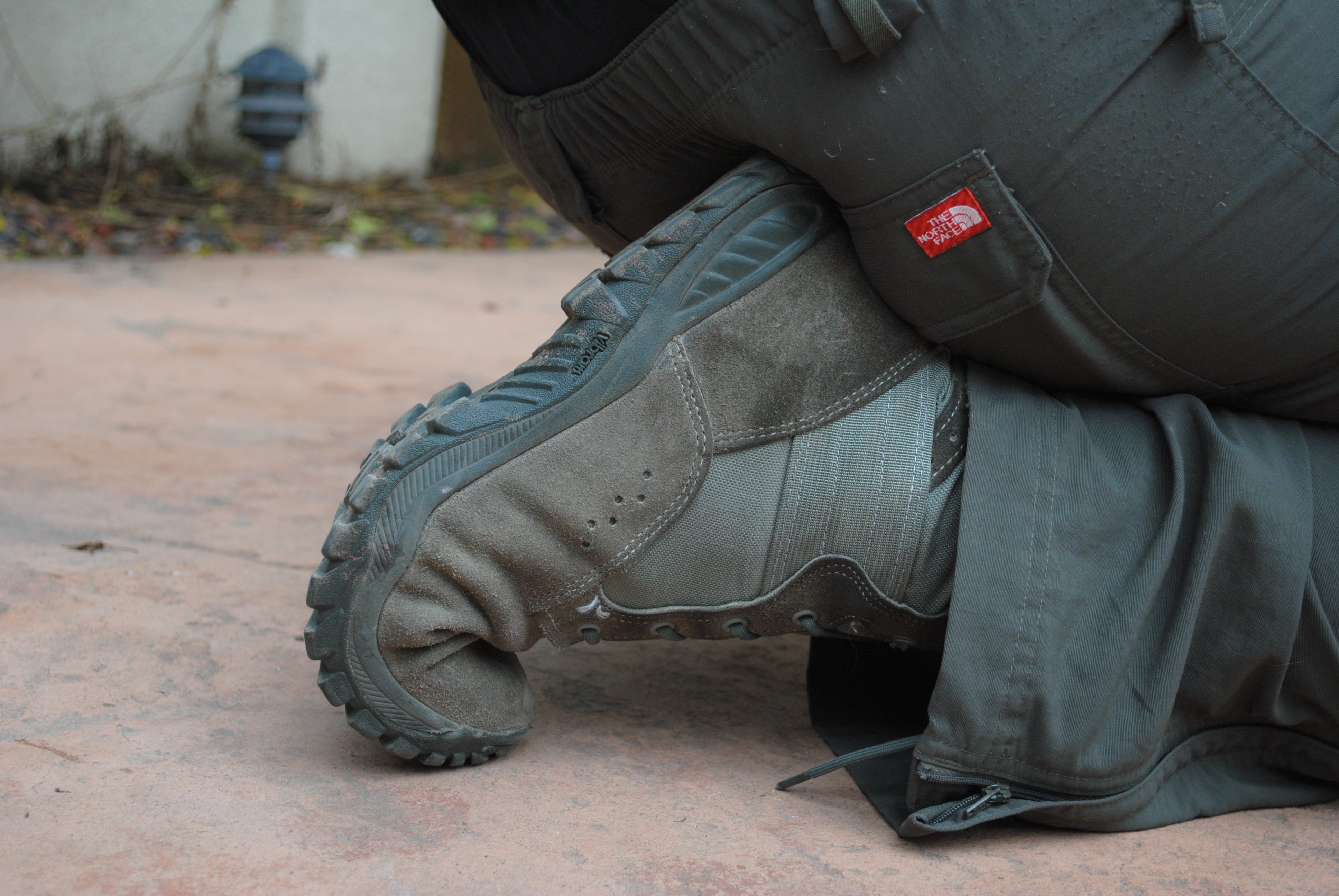 When I’m wearing boots, I tend to go with the laces down method. It uses the stiffness of the boot sole and shank to support my weight. If wearing running shoes or other light footwear, I’ll probably flex toes up.