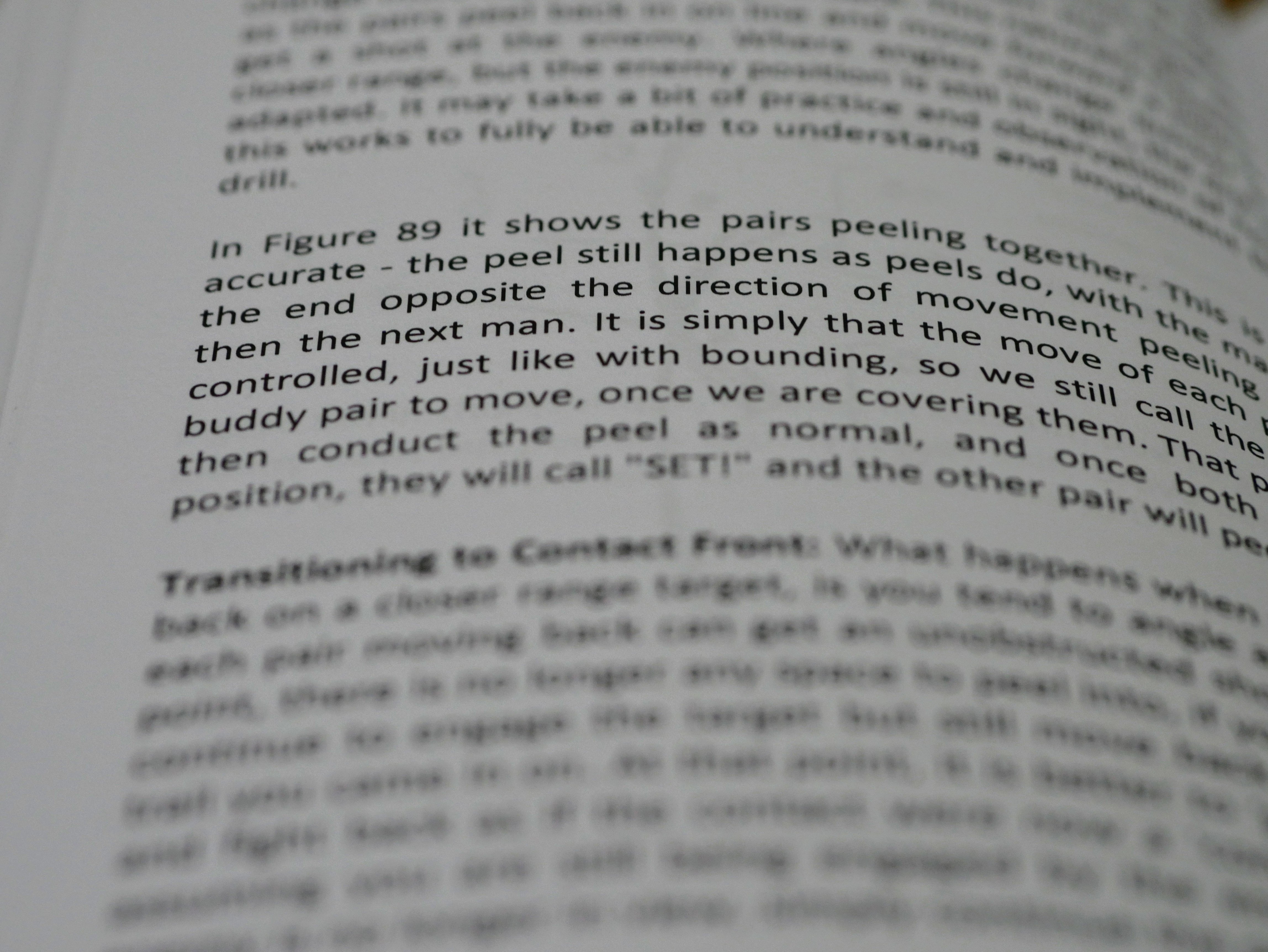 He walks you through how to shoot, move, communicate, take cover, and advance on the position. Max provides context, examples, and diagrams. It is not a checklist, though. It’s an “ideal” sequence that may or may not happen based on the circumstances.